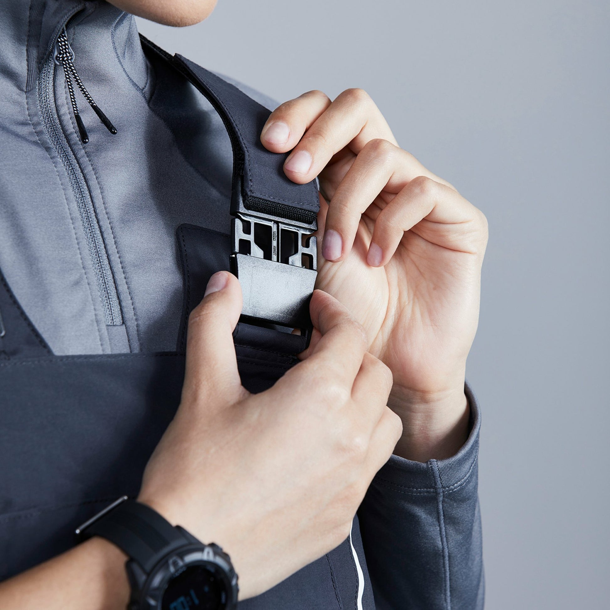 - Velcro shoulder adjustment with stretch back panel