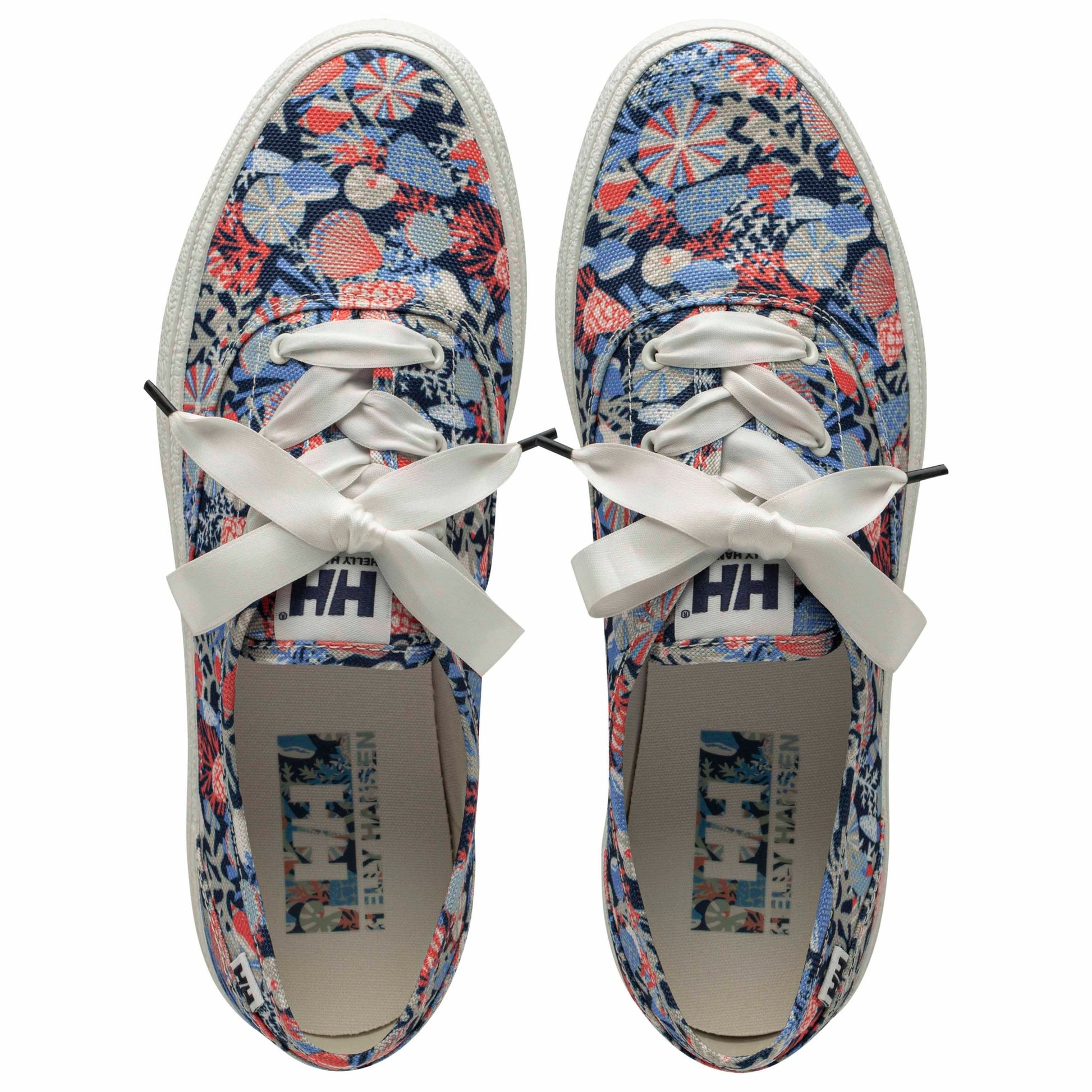 W Willow Lace with it's colorful coastal prints evokes the feeling of vacation once you tie these on. The silky satin lace adds extra flair to these classic vulcanized summer sneaker.